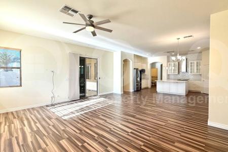 Available Now. Spacious 6-Bedroom Home with Private Pool, Outdoor Theater Prime Chandler Location. This beautifully designed 6-bedroom, 3.5-bath home offers over 4,100 sq. ft. of open, functional living space-ideal... for multi-generational living, remote work and entertaining. The open floor plan features a soaring great room, dedicated office, formal dining area, upstairs loft and an oversized primary suite. The gourmet kitchen is equipped with granite countertops, stainless steel appliances, upgraded lighting and abundant cabinet storage, making it perfect for everyday living and family gatherings. Step outside to private backyard retreat featuring a relaxing pool with waterfall, covered patio and a fully enclosed outdoor theater setup perfect for movie nights and entertaining year-round. Sun Groves community, the home is nestled between parks and walking trails with easy access to freeways, shopping, dining, entertainment and major employers. Additional Features & Highlights: Private pool with weekly maintenance included. Outdoor theater with projection system. Dedicated office + formal dining room. Upstairs loft and spacious primary suite. Gourmet kitchen with granite & stainless steel appliances. Smart home features: Nest thermostat, Ring doorbell, full-view security cameras. Solar-powered upper-level shades with remote operation. Washer & dryer included. Gated front entry, landscaped yard, gutters & sprinkler system. 3-car garage with overhead storage. Walking distance to parks, trails and greenbelts. Minutes from shopping, dining, casino, entertainment and major employers. Pets. Pet Policy: Dogs and Cats Allowed with the following exceptions: Small Dog only. Application: $65 Application Fee Per Applicant 18 years or older (Nonrefundable). Once all required documents have been submitted by every applicant, please allow 24-72 business hours for processing. Move-in dates more than 21 days after application approval require additional approval. Lease Length: 12-month minimum (longer lease terms may be negotiable) Initial Move-In Costs: Applicants may choose between a traditional security deposit or a Security Deposit Alternative program. A one-time lease preparation fee of $250 plus the first month's rent is due prior to move-in. If the applicant has a pet, a $150 nonrefundable pet fee per pet applies. Recurring Monthly Costs: A 4.99% administration fee applies. All on Q Property Management residents are enrolled in the Resident Benefits Package for $49. This package includes liability insurance, credit building to help boost your credit score with timely rent payments, a move-in concierge to make utility connection and home service setup simple, a Renter to Buyer program and more. All information, including advertised rent and other charges, is deemed reliable but not guaranteed and is subject to change. Pet Friendly, Concierge, Pool, Sprinkler System, Dishwasher, Washer, Dryer, Microwave, Refrigerator, Patio, Dining Room, Family Room, Laundry Room, Office, Pantry & Solar. Listing provided by RentalSource. Read more