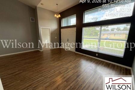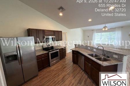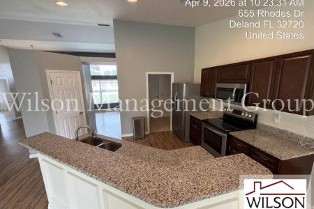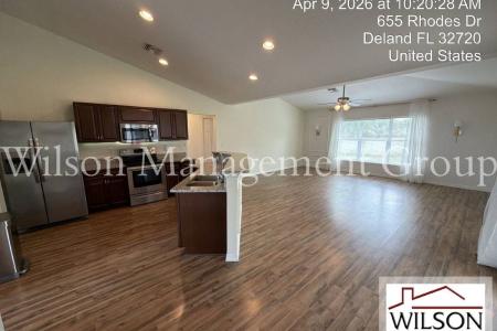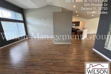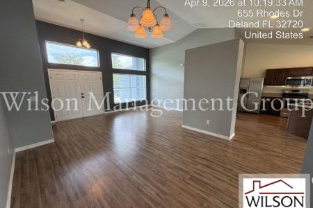 This property is managed by Joseph English at ext. 219. Upon entering this 3-bedroom, 2-bath, spacious home, you step into the formal living and dining rooms and notice the high ceilings and abundance of natural... light that make for a bright and open feel. The kitchen will bring out the gourmet chef in you, featuring granite countertops, stainless steel appliances, recessed lighting and a breakfast bar. The kitchen opens nicely to the huge family room with plenty more windows and a sliding glass door to the back patio. The substantial master bedroom offers angled windows, wainscoting accent walls and a beautiful ensuite bathroom. The master bathroom boasts a granite double vanity with modern mirrors and lighting, a garden style tub and tastefully tiled walk-in shower. There are also two additional ample sized bedrooms and a second bathroom with granite vanity and nicely tiled shower. This amazing home is 2,513 total square feet, with 1,879 under air. It also offers solar power, a two-car garage, laundry room with washer and dryer hook ups, a large covered back patio and a large backyard. Conveniently located minutes from downtown Deland with it's many restaurants, bars and entertainment venues. Inquire about this lovely home today. All information is deemed reliable, but not guaranteed. Wilson Management Group does not discriminate on the basis of race, color, religion, national origin, sex, disability or familial status. Animals By Owner Approval. Additional Security Deposit: $300 per approved animal. Nonrefundable Animal Fee: $200 per approved animal. All Wilson Management Group residents are enrolled in the Resident Benefits Package (rbp) for $50/month as additional rent, which includes renters insurance, credit building to help boost your credit score with timely rent payments, our best-in-class resident rewards program, $1M Identity Protection, move-in concierge service making utility connection and home service setup a breeze during your move-in, online resident portal for easy online rent payments & maintenance reporting, HVAC air filter delivery (for applicable properties) and much more. More details available upon application. Should Wilson Management Group stop managing the property during your tenancy, the Resident Benefit Package will be terminated. Property Manager: Joseph English. 407-513-4962. Pet Friendly, H O O K U P S, Concierge, Garden, Dishwasher, Washer, Dryer, Garbage Disposal, Microwave, Range Oven, Refrigerator, Ceiling Fan, Patio, Window Coverings, Dining Room, Family Room, Laundry Room, Master Bath, Tile, Central & Solar. Listing provided by RentalSource. Read more