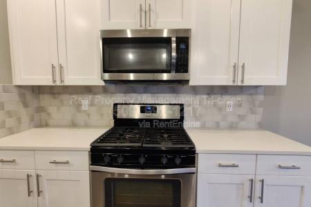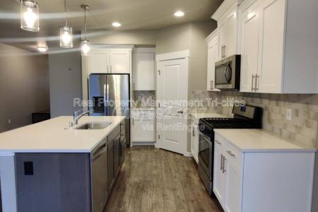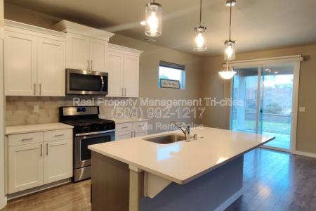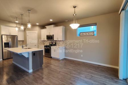 This West Pasco rambler is located off Road 100, offering quick access to the freeway system. Hardwood floors run throughout the common areas, with carpet in the bedrooms. The split-bedroom layout places two... secondary bedrooms and a full bathroom near the entry. The hallway opens into the great room featuring vaulted ceilings, a gas fireplace and large windows overlooking the backyard. The open-concept design connects the living area with the kitchen and dining spaces. The kitchen includes quartz countertops, two-tone cabinetry and a large island with bar seating that houses the sink and dishwasher. The primary suite is located off the living area and includes an en suite with a double-sink vanity, step-in shower, private commode room and walk-in closet. The fully fenced backyard offers raised garden beds, a covered patio and underground irrigation. Additional Details: Pet Policy: Pets may be considered with owner approval. No aggressive breeds permitted. Tenants are responsible for all utilities and lawncare. Resident Benefits Package: All Rpm Tri-Cities residents are automatically enrolled in our Resident Benefits Package for $35/month. Professionally managed by Real Property Management Tri-Cities. Amenities: Quick Commute to Freeway Systems. Fenced Backyard. Covered Patio. Gas Fireplace. Small Dogs Allowed, Large Dogs Allowed, Garden, Lawn, Dishwasher, Fireplace, Patio, Vaulted Ceiling, Carpet & Hardwood. Listing provided by RentalSource.
