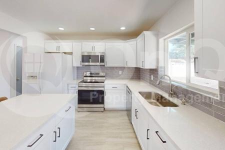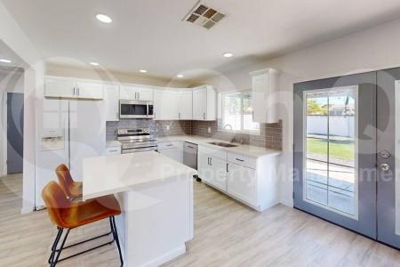 Coming Soon. Available on 3/31/2026. 1,323 Sq Ft, single-story, open floor plan. The kitchen features white shaker cabinets with crown molding, stainless steel appliances, a center island with breakfast bar, tile... backsplash and recessed lighting, plus French doors leading to the backyard. The living room and common areas have wood-look tile flooring, ceiling fans and abundant natural light. Bedrooms are comfortable, with the primary offering a walk-in closet and private bathroom. Laundry is conveniently located in the home. Parking includes a garage and driveway spaces. Exterior features include a large backyard with covered patio and synthetic grass. Situated in the Sunrise Terrace neighborhood of Phoenix, the home offers easy access to local amenities and a family-friendly community. The kitchen comes fully equipped with a comprehensive suite of appliances including refrigerator, dishwasher, microwave, oven and a convenient washer and dryer. Additional features include a water reverse osmosis system and water softener, ensuring high-quality water throughout the home. Enjoy the private fenced yard and relaxing patio, perfect for outdoor enjoyment and entertaining. Pet Policy: Dogs and Cats Allowed with the following exceptions: Pet friendly, pets will be considered upon approval. Application: $65 Application Fee Per Applicant 18 years or older (Nonrefundable). Once all required documents have been submitted by every applicant, please allow 24-72 business hours for processing. Move-in dates more than 21 days after application approval require additional approval. Lease Length: 12-month minimum (longer lease terms may be negotiable) Initial Move-In Costs: Applicants may choose between a traditional security deposit or a Security Deposit Alternative program. A one-time lease preparation fee of $250 plus the first month's rent is due prior to move-in. If the applicant has a pet, a $150 nonrefundable pet fee per pet applies. Recurring Monthly Costs: A 4.99% administration fee applies. All on Q Property Management residents are enrolled in the Resident Benefits Package for $49. This package includes liability insurance, credit building to help boost your credit score with timely rent payments, a move-in concierge to make utility connection and home service setup simple, a Renter to Buyer program and more. All information, including advertised rent and other charges, is deemed reliable but not guaranteed and is subject to change. Pet Friendly, Concierge, Fenced Yard, Dishwasher, Washer, Dryer, Microwave, Refrigerator, Ceiling Fan, Patio & Tile. Listing provided by RentalSource. Read more