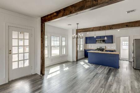 Charming and completely renovated 1930s bungalow in the heart of Oklahoma City. This 2-bed, 2-bath home beautifully blends classic character with modern updates, offering 1,405 sq. ft. of bright, open living space.... Step inside to find fresh interiors with luxury vinyl plank flooring, high ceilings with exposed beams and abundant natural light throughout. The show-stopping kitchen features rich blue cabinetry, a butcher block island, subway tile backsplash and stainless-steel appliances - perfect for entertaining or casual everyday living. Both bedrooms are spacious with updated bathrooms nearby, while the primary suite includes a private en-suite bath. Outside, enjoy the inviting covered front porch and. A detached secondary structure with a bathroom (no Hvac) offers flexible space for storage, hobbies or a workshop. Conveniently located near downtown OKC, Paseo and major highways - this stylish home delivers the perfect combination of vintage charm and modern comfort. Dishwasher, Microwave & Pet Friendly. Listing provided by RentalSource.