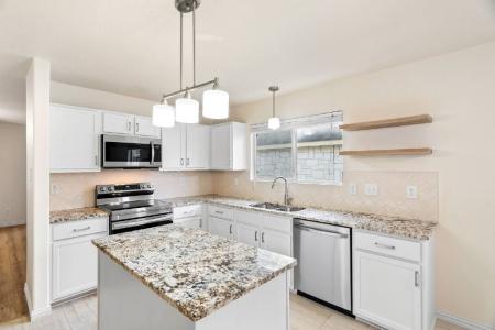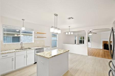 Newly Remodeled 1-Story Ranch Home. Welcome to this beautifully renovated 1-story ranch home, nestled in the serene surroundings of a quiet dead-end street in the sought-after Comal County school district. The home... features three cozy bedrooms and two elegantly updated bathrooms, offering comfort and convenience for family living. Step inside to find new hardwood-look tile flooring that combines the beauty of wood with the durability of tile. Additionally, luxury vinyl planking adds a touch of sophistication throughout the home. A culinary dream, the kitchen is equipped with new granite countertops that complement the sleek, new appliances, perfect for both everyday meals and entertaining guests. The heart of the home features a wood-burning fireplace, creating a warm and inviting atmosphere for relaxing evenings. Experience outdoor leisure under the brand-new pergola in the backyard, ideal for enjoying sunny days and peaceful evenings. Newly painted walls provide a fresh and modern look, while new fixtures throughout the home add a touch of elegance. The property also includes a new sprinkler system, ensuring ease of maintenance and lush landscaping. Don't miss the opportunity to make this your new haven of comfort and style. Granite Countertops, Dishwasher, Refrigerator, Ceramic Tile, Laundry Room, Living Room, Primary Bedroom, Garage, Disposal, Gas Stove, Laminate, Dining Room, Primary Bath, Air Conditioning, Cable / Satellite, Ceiling Fan, Patio & Pet Friendly. Listing provided by RentalSource.