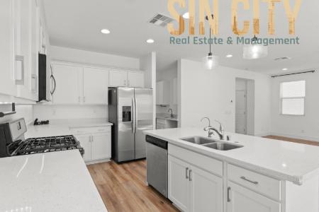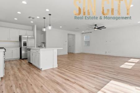 This stunning 2021-built home offers 2,299 sq. ft. of open and modern living space, perfect for anyone seeking comfort and style. With 3 bedrooms, 2.5 bathrooms and an oversized loft, you'll have plenty of room... to relax and entertain. The open floor plan downstairs features a large kitchen with an expansive kitchen island, ideal for hosting or casual dining. Enjoy stainless steel appliances, under-cabinet lighting, a large pantry and a water softener. Plus, there's a built-in coffee bar for your morning convenience. No carpet downstairs and plenty of storage throughout. Step outside to a low-maintenance backyard with a patio cover, pavers and artificial grass, making it the perfect outdoor retreat. Upstairs, all bedrooms feature large closets and the laundry room is conveniently located with the bedrooms. The oversized loft offers flexible space for a home office, playroom or entertainment area. All appliances, including washer and dryer, are included. Schedule your showing today. All Sin City Real Estate and Management Llc residents are enrolled in the Resident Benefits Package (rbp) for $45/month which includes liability insurance, credit building to help boost the resident's credit score with timely rent payments, HVAC air filter delivery (for applicable properties) and much more. More details upon application. Sin City Real Estate and Management Llc. B.1003001. Llc. Dishwasher, Disposal, Gas Stove, Granite Countertops, Island, Microwave, Oven, Pantry, Refrigerator, Carpet, Ceramic Tile, Laminate, Dining Room, Family Room, Foyer, Great Room, Guest Suite, Laundry Room, Living Room, Loft, Party Room, Air Conditioning, Blinds, Ceiling Fan, Dryer, Garage, Gas Heat, Walk In Closet(s), Washer, Washer Dryer Hookups, Window Coverings, Deck / Balcony, Patio & Pet Friendly. Listing provided by RentalSource. Read more