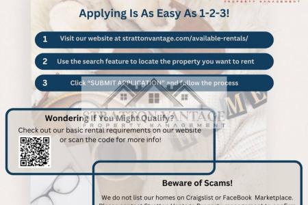 - Pet adds to rent $60-80 per approved pet