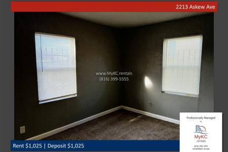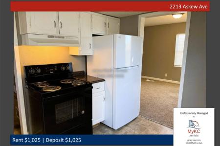 This charming 2-bedroom, 1-bath duplex is freshly updated and ready to welcome you home. Enjoy a freshly painted interior, brand-new carpet and a new refrigerator, giving the space a clean, modern feel from the... moment you walk in. The home also features a dedicated laundry/utility room, adding convenience and extra storage, along with access to a yard/lawn - perfect for relaxing outdoors or enjoying a little green space. The duplex layout offers the comfort of a home with the ease of low-maintenance living. With fresh updates throughout, this cozy and inviting home won't last long - view it today. $1,025 rent, $1,025 deposit. Pets only allowed on Landlord approval. $250 Pet Fee. $55 Application Fee per adult. No evictions, bankruptcies or felonies. No past due balances owed with previous Landlords. Professionally managed by MyKC.rentals. We comply with Kansas City Ordinance No. 231019 and the landlord does not discriminate based on source of income. Please view our Privacy Policy for information about Sms communications. Electric Stove, Oven, Refrigerator, Carpet, Linoleum, Laundry Room, Living Room, Air Conditioning, Blinds, Gas Heat, Washer Dryer Hookups, Lawn & Pet Friendly. Listing provided by RentalSource. Read more