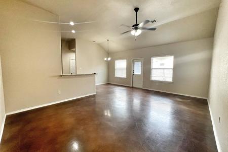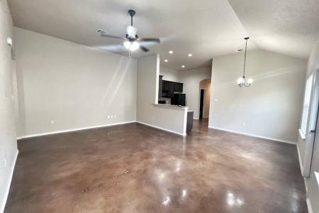 Welcome to this beautiful and spacious duplex offering 3 bedrooms, 2 bathrooms and a 2-car garage - all in a prime New Braunfels location. Step inside to an open floor plan filled with natural light, high ceilings... and stylish stained concrete flooring throughout. The living room offers plenty of space to relax and includes access to the side yard. The eat-in kitchen is well-appointed with a breakfast bar, granite countertops, tile backsplash, black appliances (including stove/oven, microwave, dishwasher) and a refrigerator. The primary suite features a tray ceiling, walk-in closet and a private en-suite bath with dual vanities and a tub/shower combo. Enjoy direct access to the private backyard and covered patio - perfect for entertaining or relaxing after a long day. Spacious secondary bedrooms offer walk-in closets and ceiling fans for added comfort. Located just minutes from IH-35, Fischer Park, downtown New Braunfels and local shopping - convenience meets comfort in this move-in ready home. Landlord to approve animals. Agent commission 25% capped at $500. Applicant's Agent must accompany their clients to the showing and present all documents to their clients. Dishwasher, Disposal, Electric Stove, Granite Countertops, Microwave, Pantry, Refrigerator, First Floor Suite, Laundry Room, Air Conditioning, Blinds, Ceiling Fan, Electric Heat, Walk In Closet(s), Washer Dryer Hookups, Window Coverings, Fence, Sprinkler System, Garage & Pet Friendly. Listing provided by RentalSource.