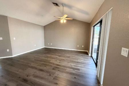 Welcome to this beautifully maintained 2-bedroom, 2-bathroom duplex with a 1-car garage that includes lawn service. The home features luxury vinyl plank flooring and soft neutral paint throughout for a clean, modern... feel. Upon entry, you'll find a guest bedroom and full bathroom to the left, while the garage with washer and dryer hookups is conveniently located to the right. Further inside, vaulted ceilings open up to a bright white kitchen and an open-concept living space. Sliding glass doors lead to a screened-in porch, bringing in plenty of natural light and creating an inviting indoor-outdoor flow. The primary suite is located at the back of the home and includes an en-suite bathroom with linen closet and upgraded vanities. 1-year lease. Pets allowed with owner approval and additional security deposit per pet. Optional: All Legacy Properties residents can enroll in the Resident Benefits Package (rbp) for $59.95/month which includes liability insurance, credit building to help boost the resident's credit score with timely rent payments, up to $1M Identity Theft Protection, HVAC air filter delivery (for applicable properties), move-in concierge service making utility connection and home service setup a breeze during your move-in, our best-in-class resident rewards program, on-demand pest control and much more. More details upon application. Residents are required to have renter's insurance. Photos may be enhanced using Ai for lighting or virtual staging purposes. Patio & Pet Friendly. Listing provided by RentalSource. Read more