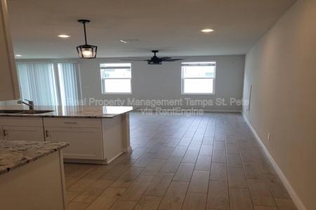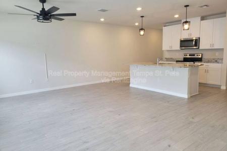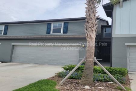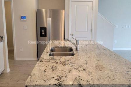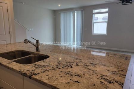 Move In Right Away. Stunning, modern style single family townhome. Built in 2023 with pristine attention to detail, it spans over 1566 sqft, promising abundant space for a versatile lifestyle. With 2 well-appointed... bathrooms on the second floor and half bathroom on the first, the property exudes comfort and sophistication. A wide-open floor plan with attached, beautiful kitchen with big cabinets, stainless steel appliances and a contemporary island perfect for barstools. The half bathroom near the kitchen finishes this floor. Upstairs find a small landing/bonus space that the owner used a music room. Down the main hall is the primary bedroom is large in size, has a walk-in closet and a beautiful en suite bathroom. The 2 secondary bedrooms share a bathroom with a jack and jill set up. Contemporary and move in ready. Nestled in the thriving community of Pasco County on a generous 1920 sqft lot, it's a dream come true for families seeking a balance of community and privacy. The mailboxes and small community pool are only steps away. Amazing amenities (including Epperson) are close by. Enjoy the privilege of being the resident to benefit from it's strategic location offering proximity to highly rated schools. The community pool is only steps away. Embrace a lifestyle. Contact us right away to request a showing. Minimum qualifications - over 3 times rent amount income, 550 credit, no evictions. Pet Friendly, Garbage, Sewage, Barbecue Area, Pool, Dishwasher, Washer, Dryer, Microwave, Range Oven, Refrigerator, Large Closets, Patio, Dining Room, Family Room, Master Bath, Walk In Closet, Carpet & Linoleum Vinyl. Listing provided by RentalSource. Read more